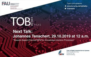 TOBI Talks continue with Johannes Tenschert’s speech: “Towards Aspect-Oriented BPM for Knowledge-Intensive Processes”.