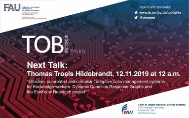 We are glad to announce the third session of TOBI Talks: Effective, co-created and compliant adaptive case management systems for Knowledge workers: Dynamic Condition Response Graphs and the EcoKnow Research Project.
