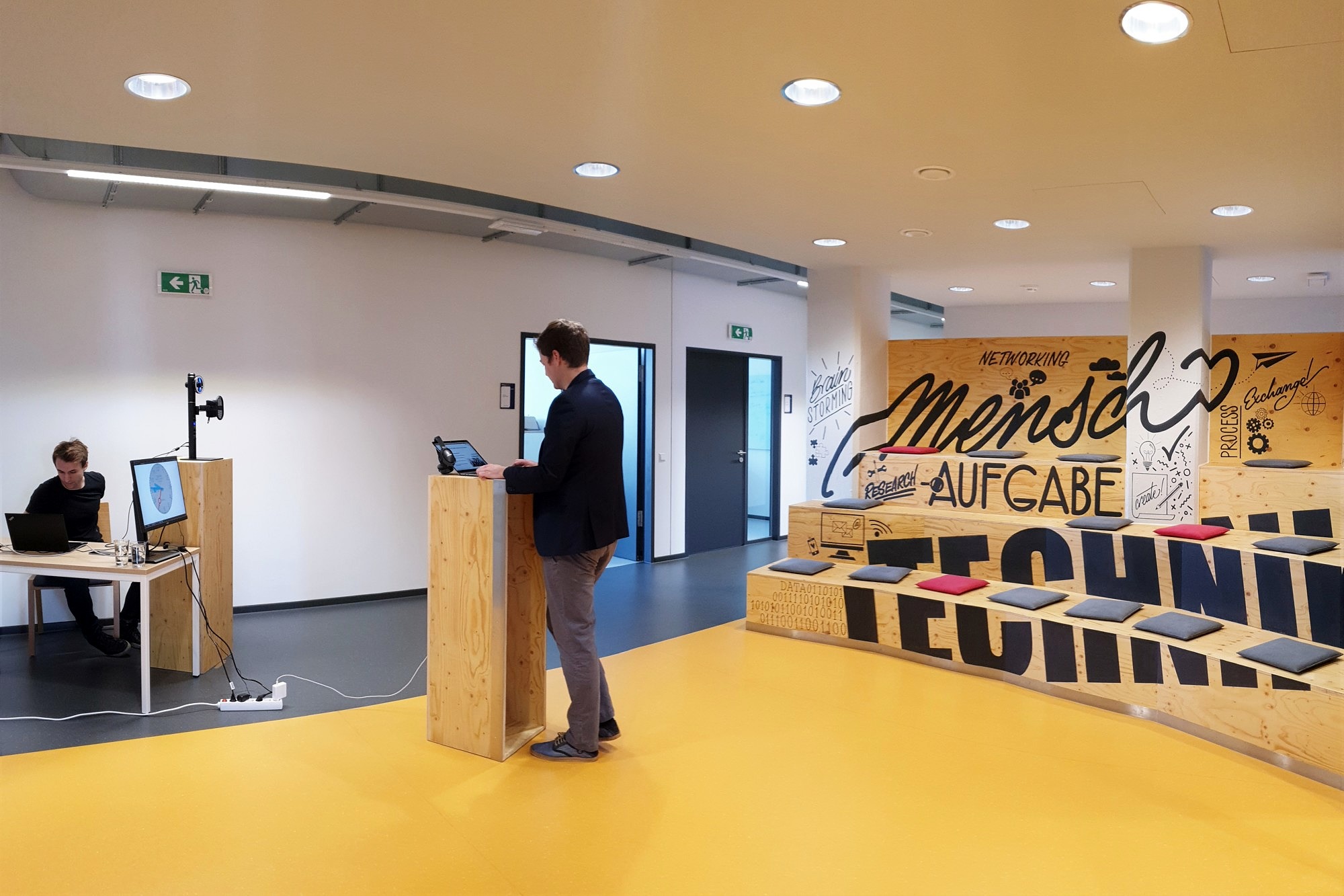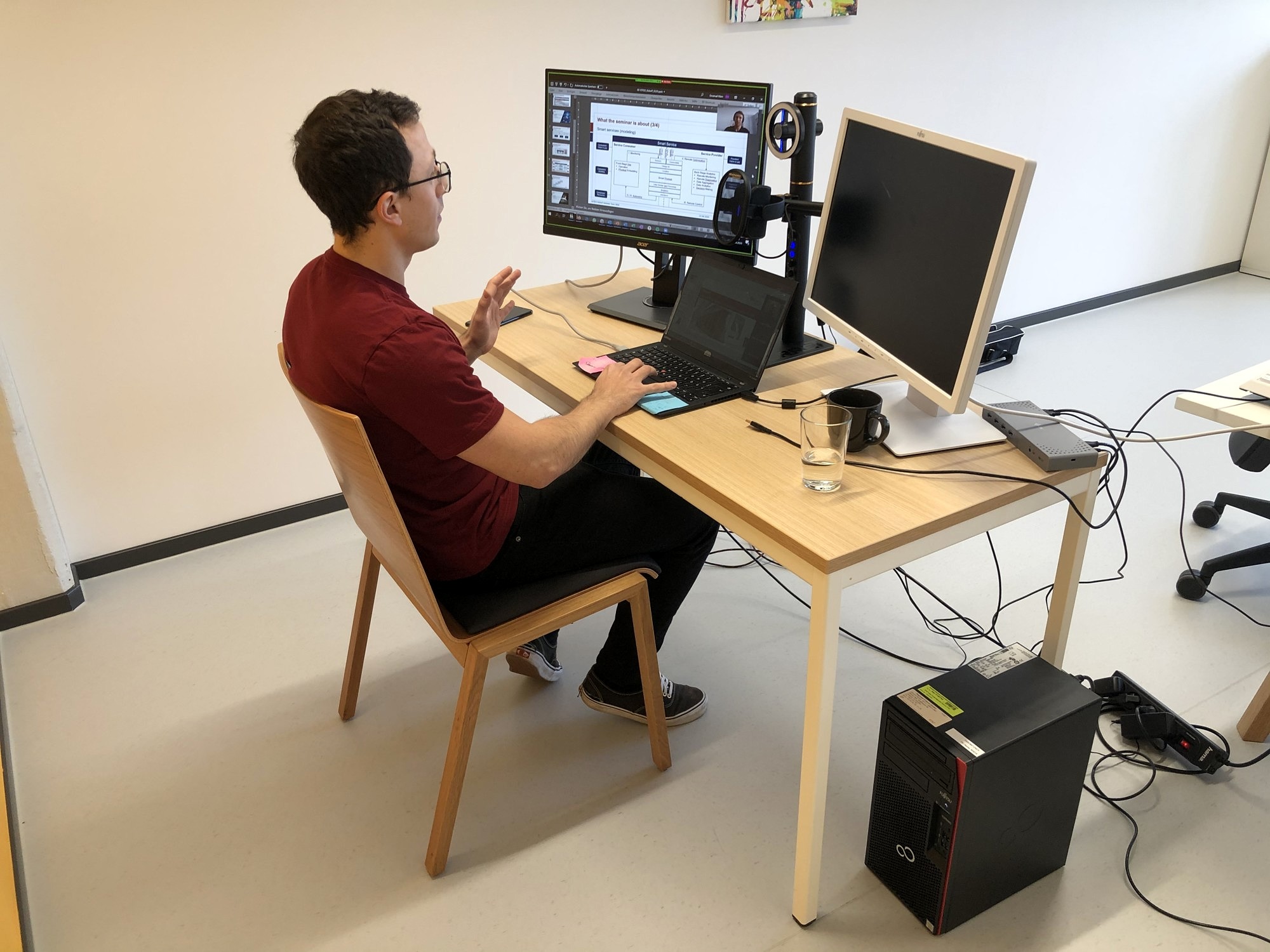 2/2In the same week, the kick-offs of the courses “Internet of Things and Industrial Services Seminar”, “Forschungsmethodisches Seminar / Seminar Wirtschaftsinformatik”, “IT-Based Process Automation” and “Introduction to Computer Science” were streamed – once again while keeping a safe distance to one another.